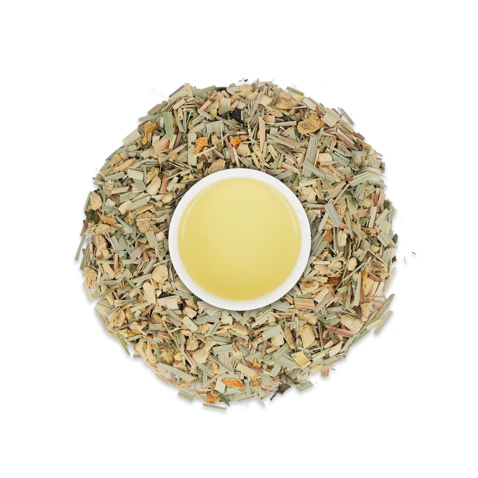 Diese authentische ayurvedische Gewürzteemischung aus kühlem Zitronengras, feurigem Ingwer und frischer Pfefferminze findet zu einer raffinierten Mischung zusammen.